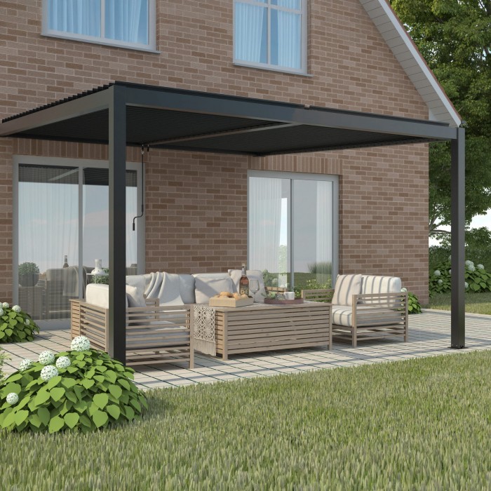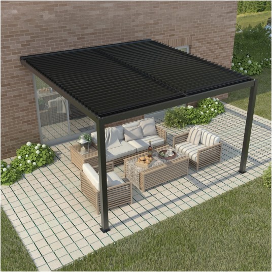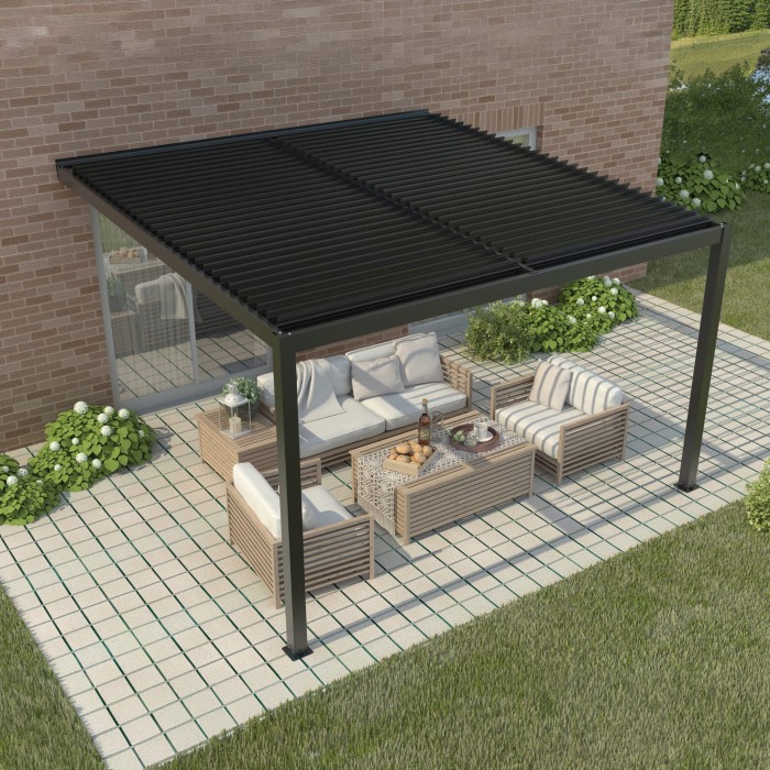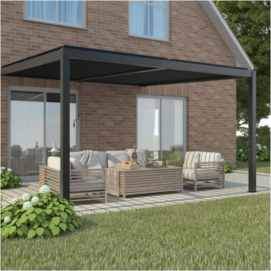 Pergola LUXE przyścienna 4 × 4 × 2,5 m antracyt z LED