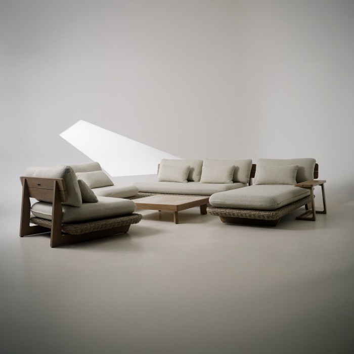 Zestaw Tulum należy do kolekcji zaprojektowanej we współpracy z Maciejem Zieniem dla marki ESTI&ESTA. Linia ta łączy nowoczesną formę z wysoką jakością materiałów przeznaczonych do intensywnego użytkowania zewnętrznego. Zestaw został zaprojektowany jako kompletna, funkcjonalna strefa wypoczynkowa do ogrodu, tarasu oraz przestrzeni komercyjnych. Połączenie sofy, foteli oraz leżanki pozwala na swobodne dopasowanie układu do potrzeb użytkowników – zarówno do codziennego wypoczynku, jak i spotkań w większym gronie. Uzupełnieniem całości są stolik kawowy oraz stolik boczny, które zwiększają funkcjonalność zestawu.