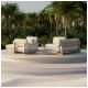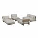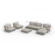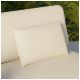 Zastosowane poduszki wykonano z tkaniny Olefin o gramaturze 700 g/m², odpornej na promieniowanie UV oraz wilgoć. Grubość siedzisk (19 cm) i oparć (24 cm) zapewnia wysoki komfort podczas długiego użytkowania. Wypełnienie z syntetycznej bawełny oraz zamki błyskawiczne ułatwiają konserwację i utrzymanie estetycznego wyglądu zestawu.