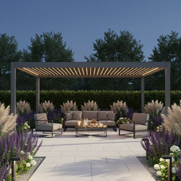 Elektryczna pergola tarasowa do dużych przestrzeni