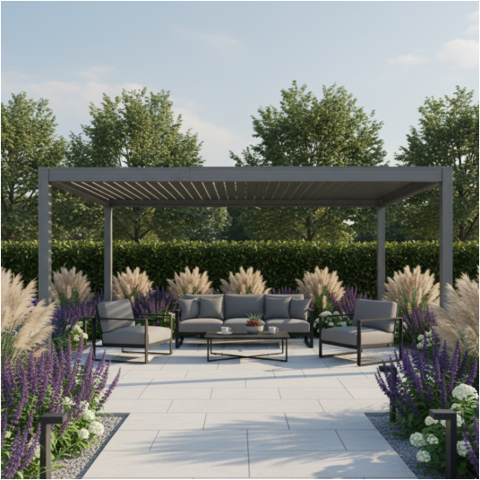 Model ELITE 410 × 200 × 280 cm sprawdzi się w aranżacjach prywatnych oraz komercyjnych, jako zadaszenie tarasu lub część większej konstrukcji. Aluminiowe belki górne oraz szczelinowy system odprowadzania wody zapewniają trwałość i komfort użytkowania w zmiennych warunkach atmosferycznych.