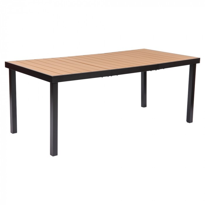 Stelaże stołu oraz krzeseł wykonane zostały z aluminium malowanego proszkowo, które charakteryzuje się odpornością na korozję oraz działanie czynników atmosferycznych. Dzięki temu zestaw sprawdzi się w użytkowaniu zewnętrznym przez cały sezon. Blat stołu wykonany jest z kompozytu w kolorze drewna, który łączy naturalny wygląd z większą odpornością na wilgoć i łatwością pielęgnacji. Połączenie aluminium i kompozytu sprawia, że zestaw jest trwały, stabilny i jednocześnie stosunkowo lekki.