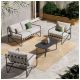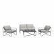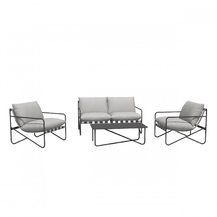 Zestaw kawowy Aria pozwala stworzyć komfortową strefę relaksu w ogrodzie, na tarasie lub balkonie. W skład kompletu wchodzi dwuosobowa sofa, dwa fotele oraz stolik kawowy, dzięki czemu zestaw zapewnia wygodne miejsce do wypoczynku dla kilku osób. Kompaktowa forma i nowoczesna stylistyka sprawiają, że meble dobrze komponują się zarówno w przestrzeniach prywatnych, jak i półkomercyjnych.