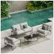 Miękkie poduszki o dużej grubości zapewniają wysoki komfort użytkowania, a ich zdejmowane pokrowce z zamkiem błyskawicznym ułatwiają utrzymanie czystości. Zestaw sprawdzi się podczas codziennego relaksu, spotkań przy kawie czy wieczornego wypoczynku na świeżym powietrzu.