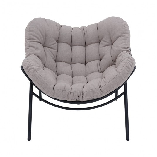 Nowoczesny fotel ogrodowy FLOW przeznaczony do użytkowania w przestrzeniach zewnętrznych, takich jak ogrody, tarasy i strefy relaksu. Konstrukcja oparta na stalowym stelażu zapewnia stabilność oraz trwałość użytkowania. Model w wersji KD (do samodzielnego montażu) ułatwia transport i magazynowanie. Fotel wyposażony jest w grubą, komfortową poduszkę wykonaną z tkaniny Olefin 240 g/m², charakteryzującej się odpornością na wilgoć i warunki atmosferyczne. Wypełnienie z włókniny poliestrowej o grubości 16 cm zwiększa wygodę podczas użytkowania.