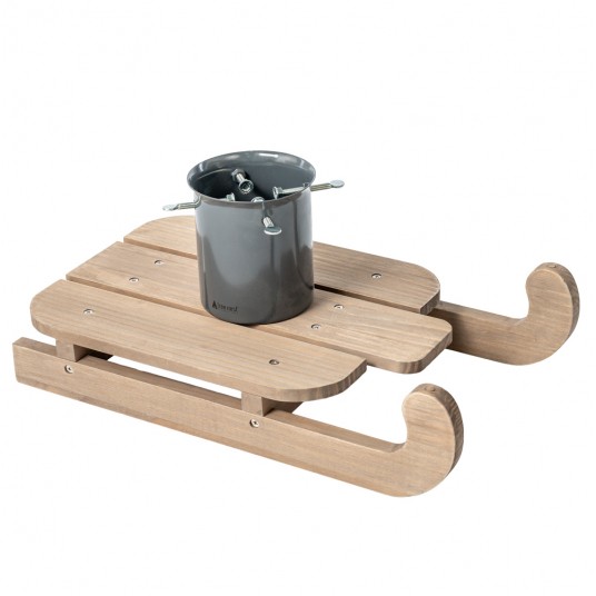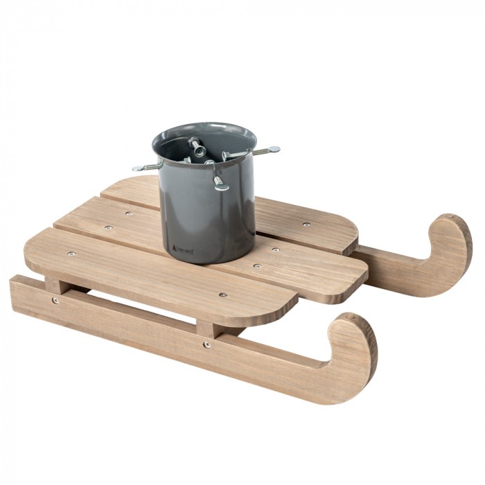 Stojak choinkowy w kształcie sanek to stylowe i funkcjonalne rozwiązanie na świąteczne drzewko o wysokości do 2,5 metra. Wykonany z metalu i drewna, łączy elegancki design z solidną konstrukcją. Stojak o wymiarach 54,5 x 31 x 23,5 cm i wadze 2,7 kg stabilnie utrzyma choinkę o średnicy pnia od 3 do 9,5 cm. Wyposażony w zbiornik na wodę o pojemności 1,3 litra, pomaga zachować świeżość drzewka na dłużej, dodając przy tym świątecznego uroku wnętrzu.