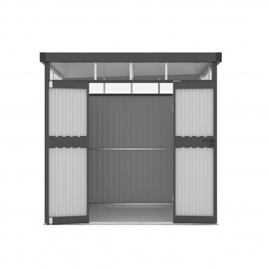 Domek wyposażono w okno z obramowaniem z PC, które wpuszcza naturalne światło i ułatwia pracę wewnątrz. Zamykana konstrukcja skutecznie chroni zawartość przed kurzem, wilgocią i owadami. Prosty design w neutralnym kolorze sprawia, że domek dobrze komponuje się z każdą aranżacją ogrodu. Domek narzędziowy sprawdzi się nie tylko do przechowywania sprzętu ogrodowego, ale także jako schowek na meble, rowery czy sezonowe akcesoria. Zabezpiecza wyposażenie przed deszczem, śniegiem i słońcem, co przedłuża jego żywotność. To praktyczne i estetyczne uzupełnienie każdego ogrodu.