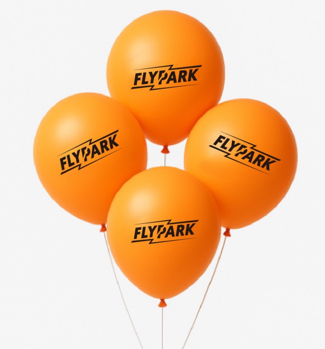 Pomarańczowy balon FlyPark z wyrazistym logo to idealna dekoracja każdej imprezy urodzinowej, eventu lub strefy zabaw. Przyciąga wzrok intensywnym kolorem, tworzy energetyczny klimat i świetnie uzupełnia pozostałe elementy wystroju FlyPark. Doskonały do aranżacji sali, tworzenia girland i rozdawania uczestnikom wydarzeń.