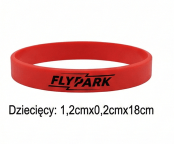 Opaska silikonowa FLYPARK dla najmłodszych użytkowników. Wykonana z miękkiego, elastycznego silikonu, idealnie dopasowuje się do dziecięcej dłoni, zapewniając komfort noszenia przez cały dzień.